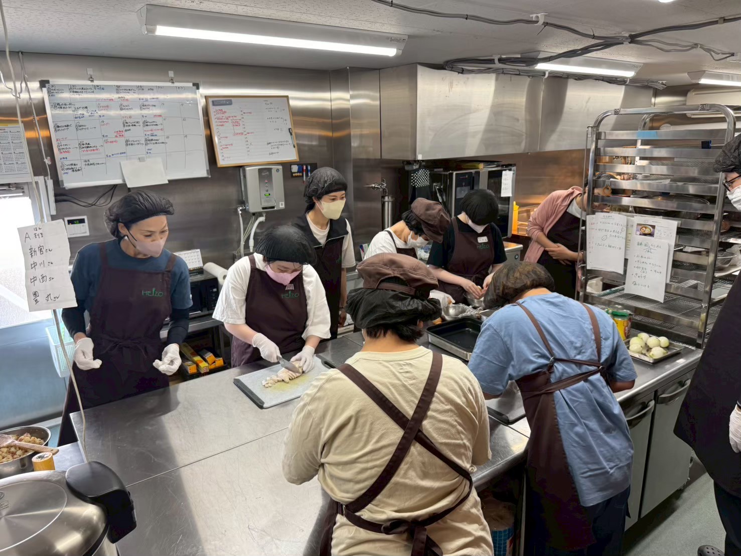 東大阪市日下町にある当グループ運営の障がい者就労支援・相談支援事業所、支援学校利用者・職員や飲食店従業員向け冷凍弁当製造を担うセントラルキッチンでの施設外就労です。